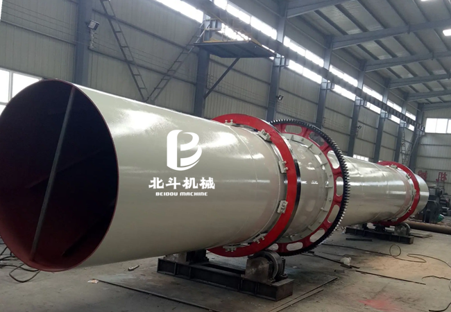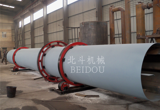 竹木烘干機(jī)由熱風(fēng)爐、電機(jī)減速機(jī)齒輪動力部分、拖輪滾圈承載部分組成。滾筒式的結(jié)構(gòu)烘干機(jī)在運行時,物料在筒內(nèi)緩慢傾斜,配合內(nèi)部刮板將物料打散攪勻,使物料與熱氣流的接觸表面增大,提高干燥速率并促進(jìn)物料前進(jìn),從而達(dá)到充分烘干的作用。